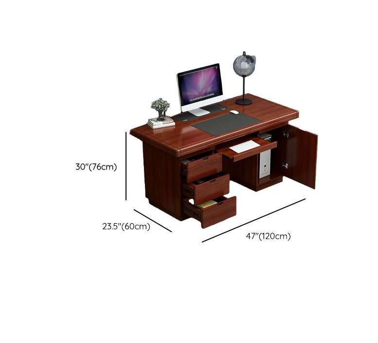 – Dimensions: The desk is approximately 1.2 meters (about 47 inches) in length, which is smaller than standard executive desks, making it ideal for smaller offices or home workspaces. It typically has a depth of around 60 to 70 cm (24 to 28 inches) and a height of about 75 to 80 cm (29 to 31 inches).