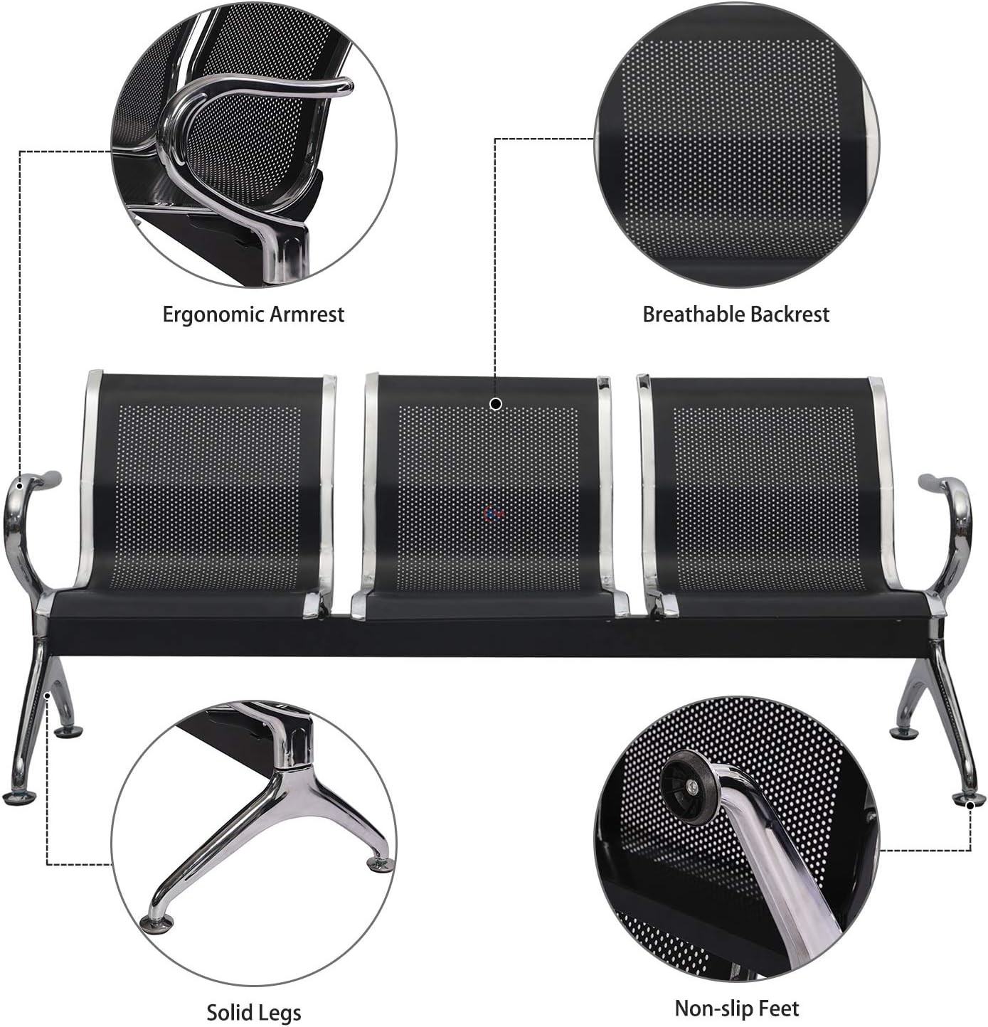Presenting the 3 Seaters Linked Chair Reception Waiting Bench, an epitome of modern elegance and functionality. Crafted from high-quality electroplated steel in a sleek silver black finish, this reception bench combines durability with contemporary design. Ideal for offices, waiting areas, and public spaces, its seamless linked configuration ensures a unified seating solution.