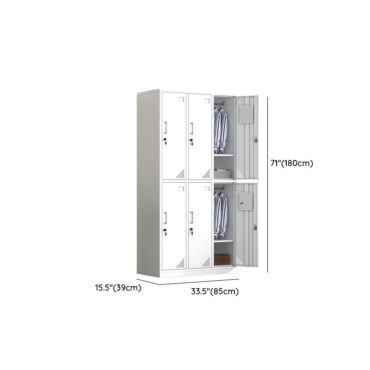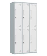 Design: Rectangular cabinet structure with six individual compartments, each with its own lockable door.