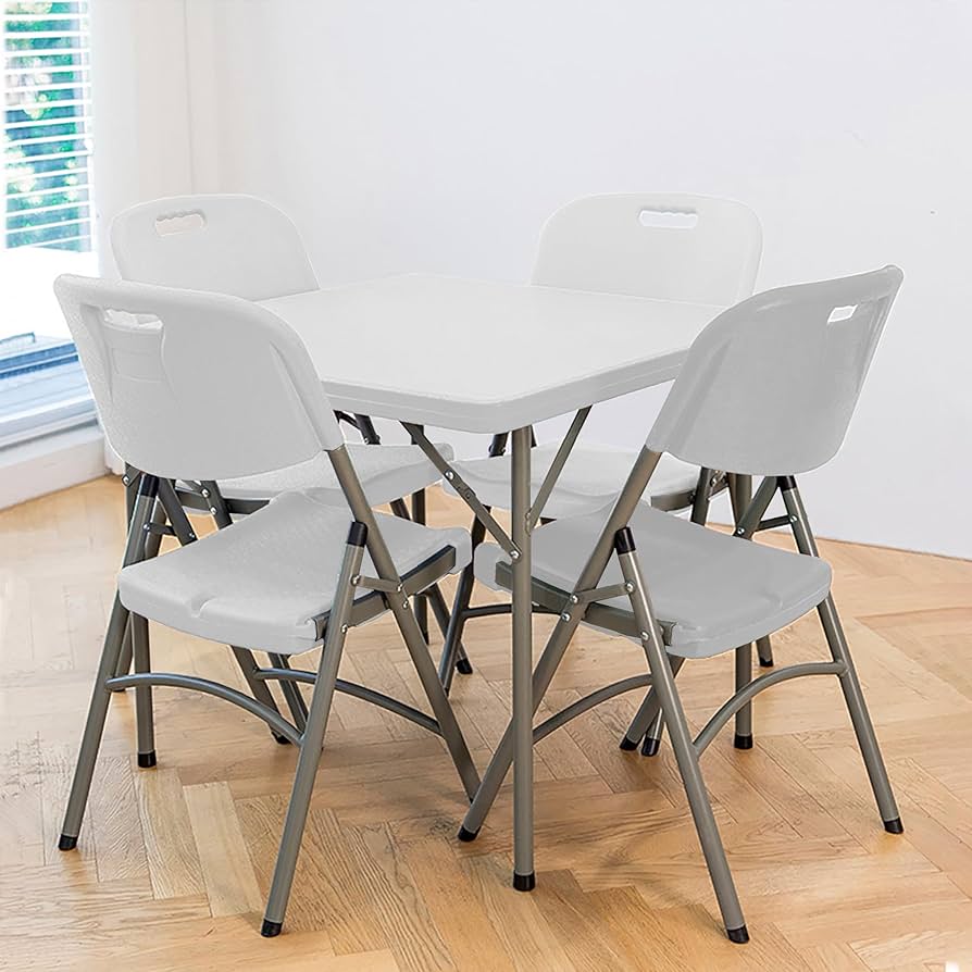 Folding chairs have a simple, functional design, with four legs that pivot in a way that allows them to fold up against each other. They are commonly used for events, outdoor gatherings, and spaces where seating flexibility is essential.