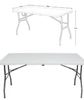 This table is great for entertaining. It can be used as a serving table, game table or outdoor dinning table. It features a polyethylene top with a sturdy tubular steel coated legs and frame. It sets up quickly and provides ample space for guests to sit and eat. It folds easily, it’s light-weight and compact to fit under a bed or in a large closet. Legs come with rubber footing to protect floor surfaces from damage. FEATURES: Granite off-white color; Durable, green environmental and recycled material HDPE; Construction Quality, High-density polyethylene (HDPE) lightweight blow-molded plastic; Light-weight, easy to move and store; Gray Powder Coated Wishbone legs; Heavy duty 25-gauge steel legs; Table surface is slightly textured to avoid scratching, but smooth enough to write on; Easy to clean – just use a mild soap and a soft-bristled brush; for tough stains, use a mild abrasive such as Soft Scrub; Water proof, resist acid, alkali and high temperature. Very long service life for several years; Gravity slide lock for extra stability; Can apply to many field for indoor, outdoor, commercial and entertainment use, such as home, office, restaurant, hotel, church, party, weddings and so on
