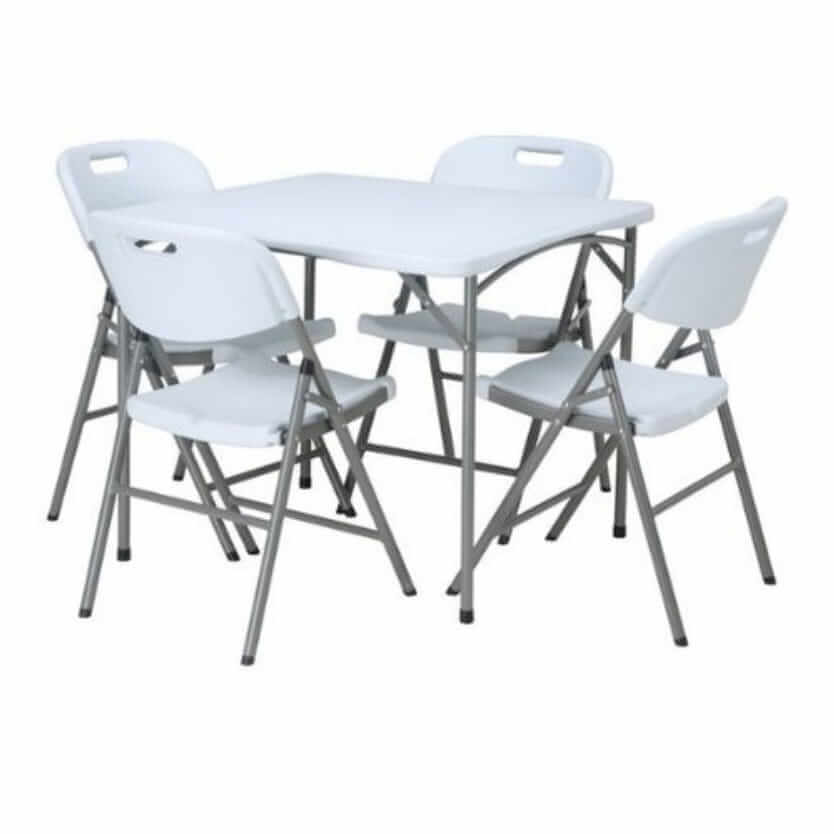 A folding outdoor set is a portable, space-saving arrangement of furniture designed for outdoor use, like patios, decks, gardens, or camping. It typically includes foldable chairs and a table, all of which can be collapsed for easy storage and transportation. These sets are made from weather-resistant materials like metal, plastic, or treated wood to withstand various outdoor conditions.