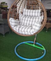 – Hanging Mechanism: The swing chair is suspended from a sturdy overhead support, such as a ceiling, a tree branch, or a specially designed stand. It is typically attached with ropes, chains, or metal hooks that allow it to swing freely.